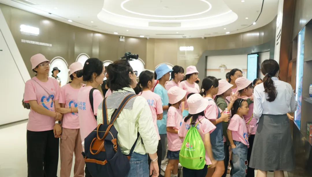 紧接着,孩子们来到了建党百年庆典红旗——070号红旗前。讲解员讲述了713贵宾会药业集团与庆典红旗的深厚渊源。孩子们听得津津有味,眼中闪烁着对党和国家的热爱与敬仰。